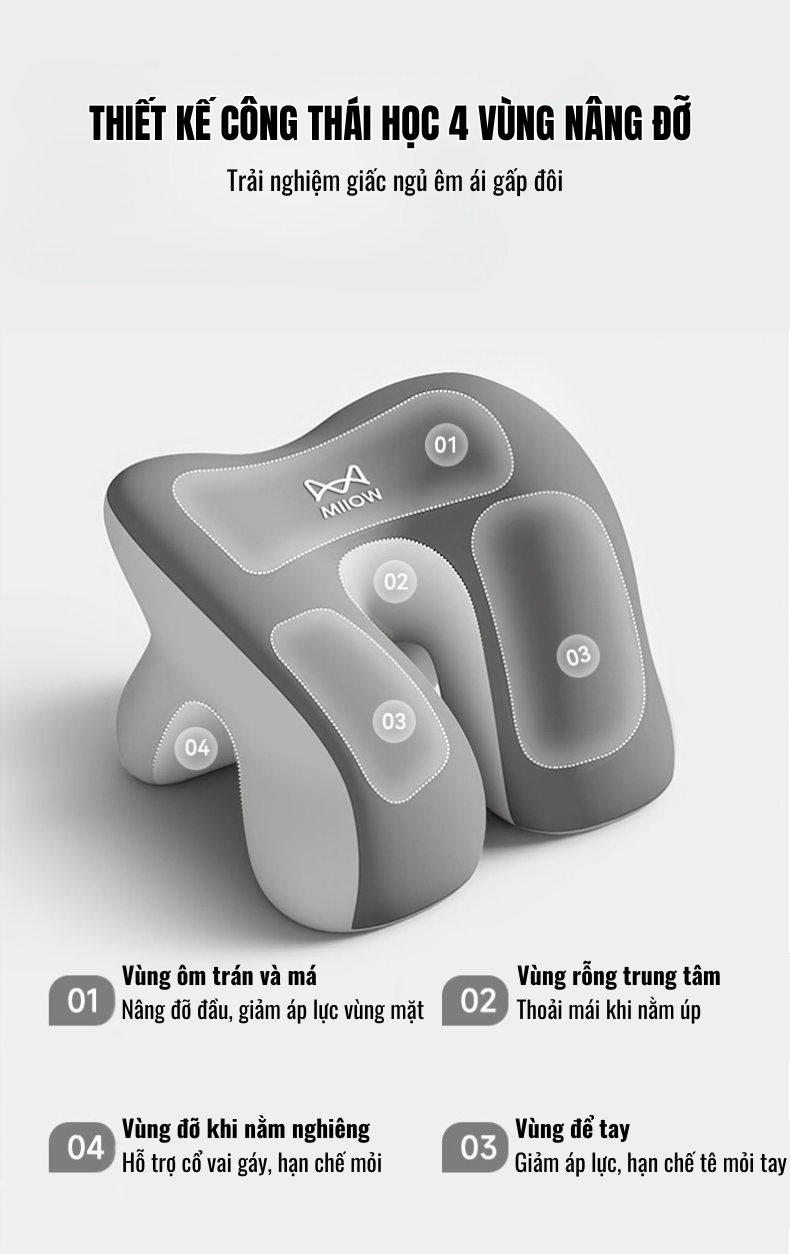 Vùng 1 (Ôm trán và má): Nâng đỡ đầu, giúp giảm áp lực lên vùng mặt khi ngủ úp hoặc nghiêng.