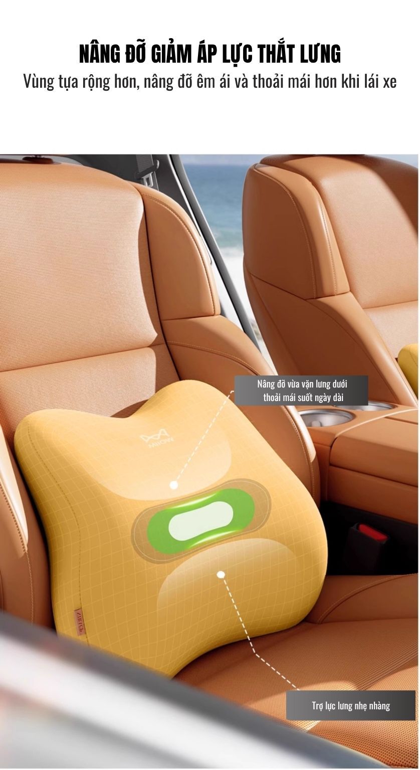 The ComfyGem | Đệm Tựa Xe Hơi Công Thái Học Cao Cấp, Mềm mại êm ái, nâng tầm nội thất xe sang trọng