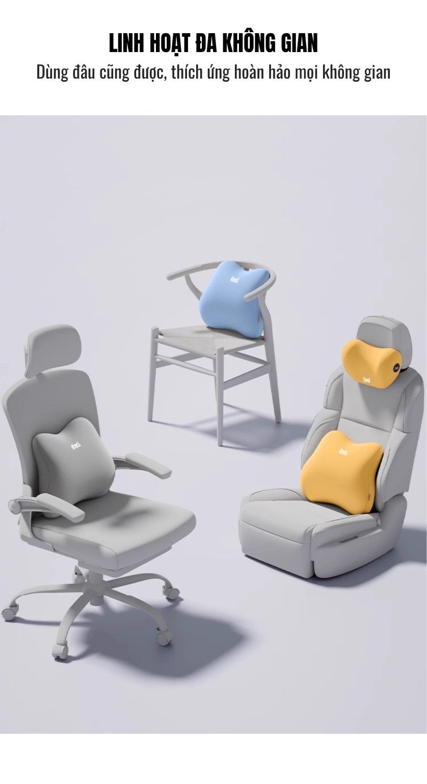 Phù Hợp Với Nhiều Không Gian: Thiết kế linh hoạt đa không gian, thích ứng hoàn hảo với ghế ô tô, ghế văn phòng và các loại ghế khác.
