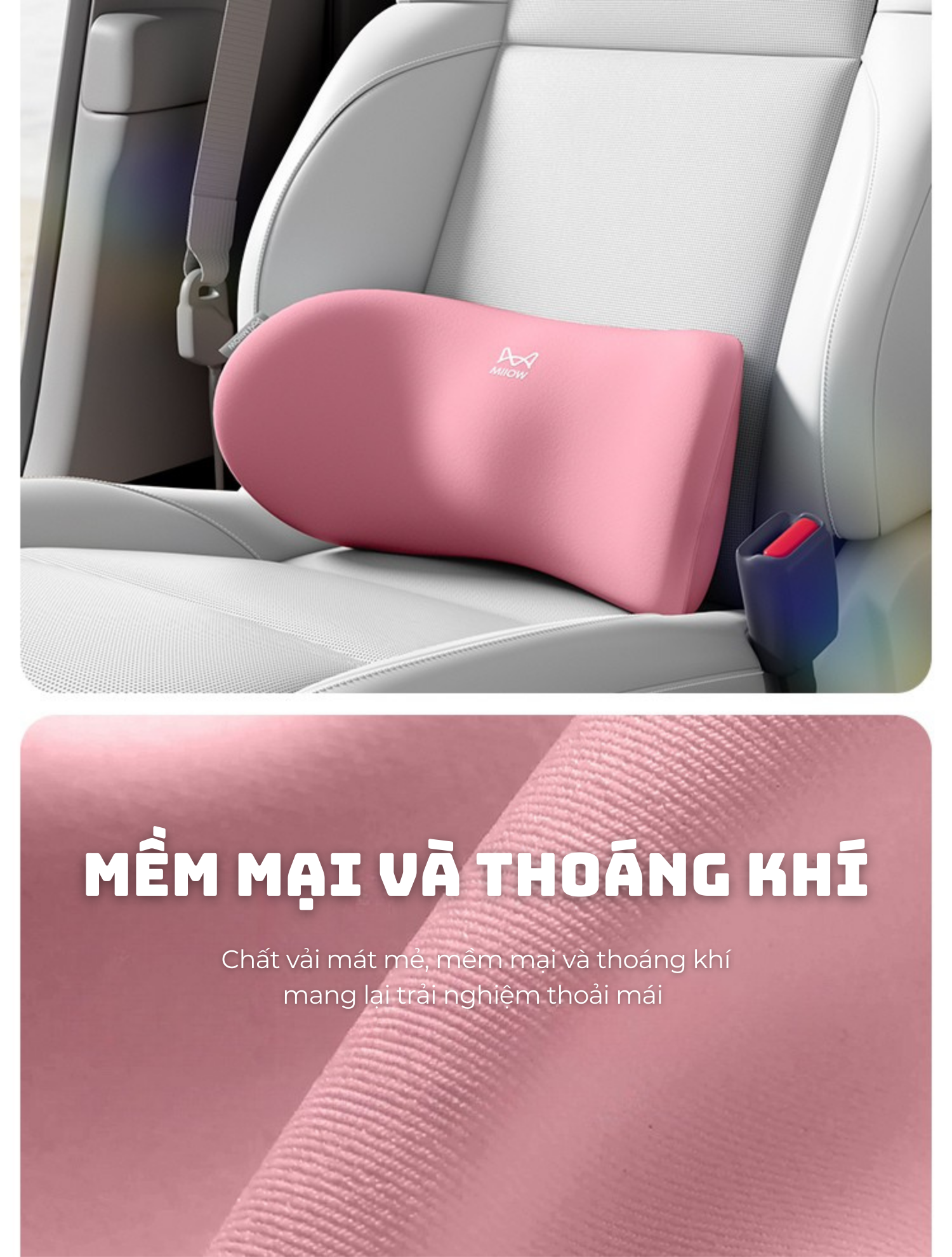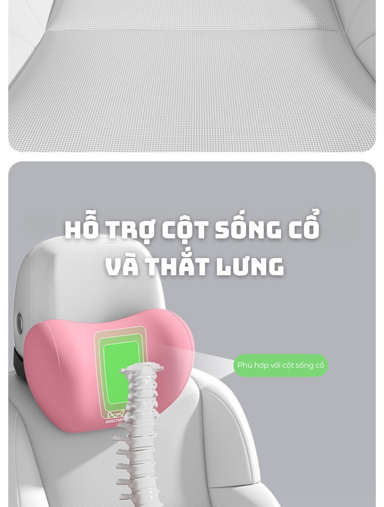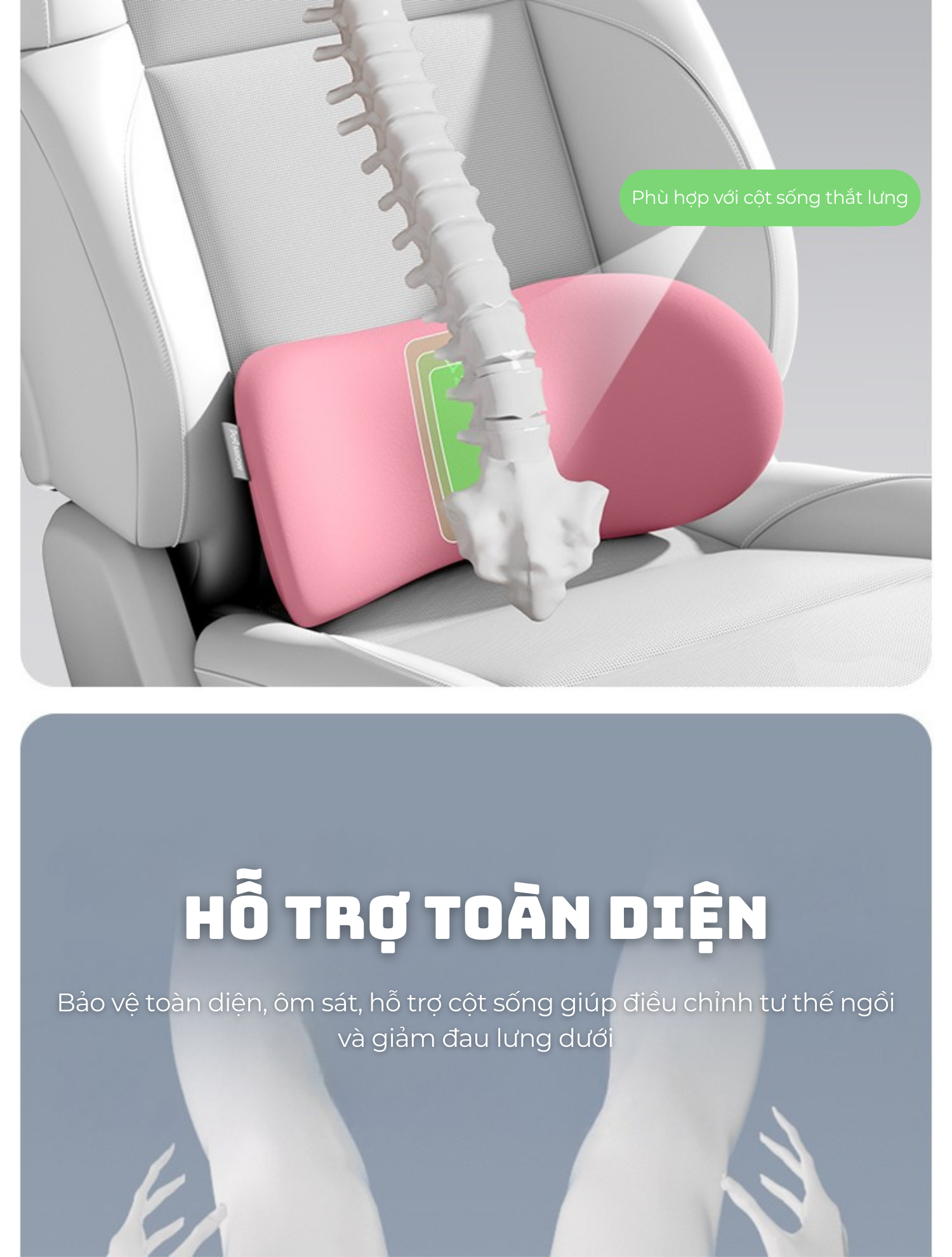 The ComfyGlow | Gối tựa lưng cao cấp giảm áp lực thắt lưng, mang lại cảm giác êm ái khi ngồi lâu.
