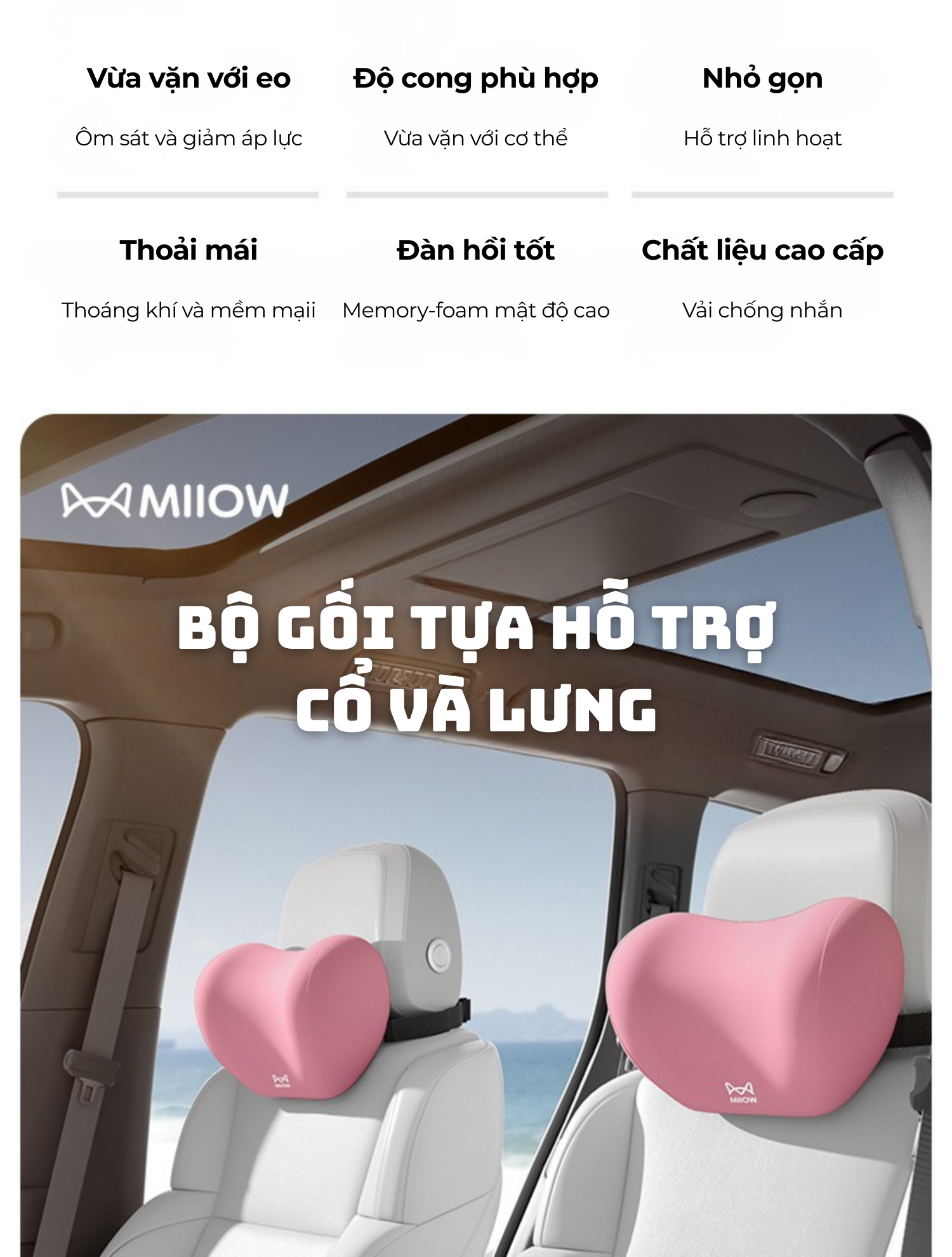- Hỗ trợ Cột sống Chính xác: Thiết kế lồi trung tâm và hình yên ngựa giúp nâng đỡ chính xác cột sống thắt lưng tại điểm cố định với lực hỗ trợ mạnh mẽ. - Giảm Mệt mỏi & Đau Nhức: Thiết kế bao bọc 3D giúp ôm sát toàn bộ lưng và phân tán áp lực, giải quyết tình trạng đau, tê, mỏi khi ngồi lâu. - Chỉnh Tư Thế: Đường cong hoàn hảo giúp cố định và chỉnh sửa tư thế ngồi lái xe/làm việc, duy trì tư thế thẳng lưng. - Thoáng Khí & Dễ Vệ Sinh: Vỏ gối có khả năng hút ẩm và khô nhanh. Vỏ đệm có thể tháo rời và giặt bằng nước. - Đàn Hồi Cao & Bền Bỉ: Lõi 60D Memory Foam đàn hồi chậm, giữ hình dạng hỗ trợ lâu dài, không dễ biến dạng.