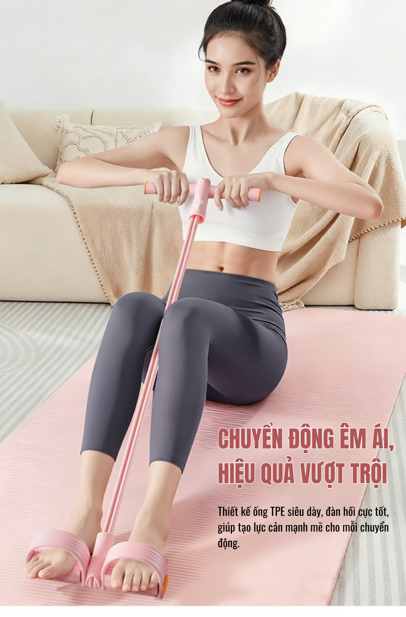 - Chất liệu chính: Cao su TPE cao cấp – đàn hồi cao, chịu lực tốt, không biến dạng sau nhiều lần kéo