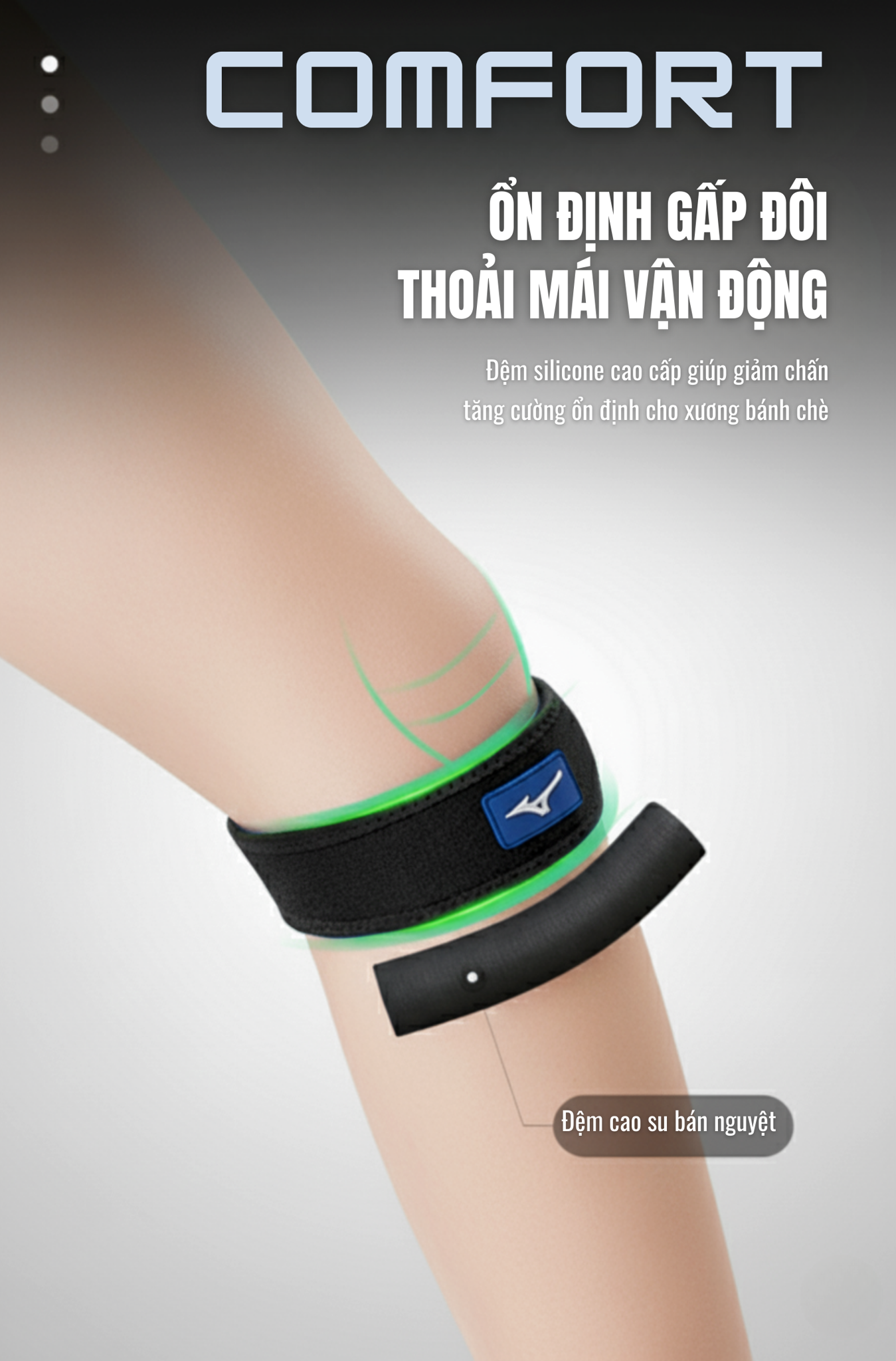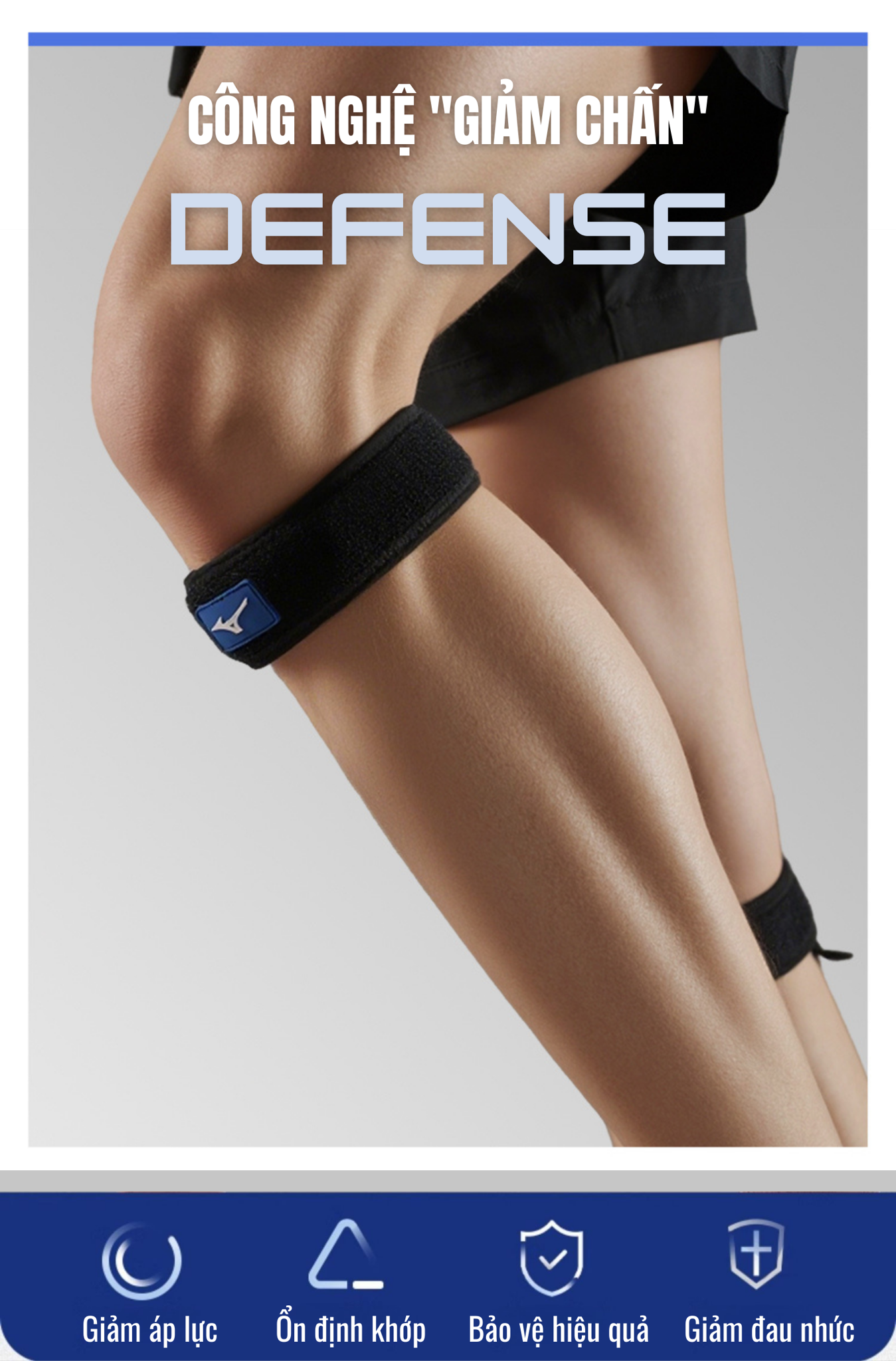 The JointStrap Mizuno | Đai bảo vệ xương bánh chè & dây chằng đầu gối chuyên dụng, được thiết kế để tối ưu hóa sự ổn định của khớp gối. Giúp giảm áp lực tác động lên xương bánh chè và hỗ trợ các dây chằng đầu gối. Từ đó ổn định cấu trúc khớp trong các hoạt động thể thao cường độ cao.