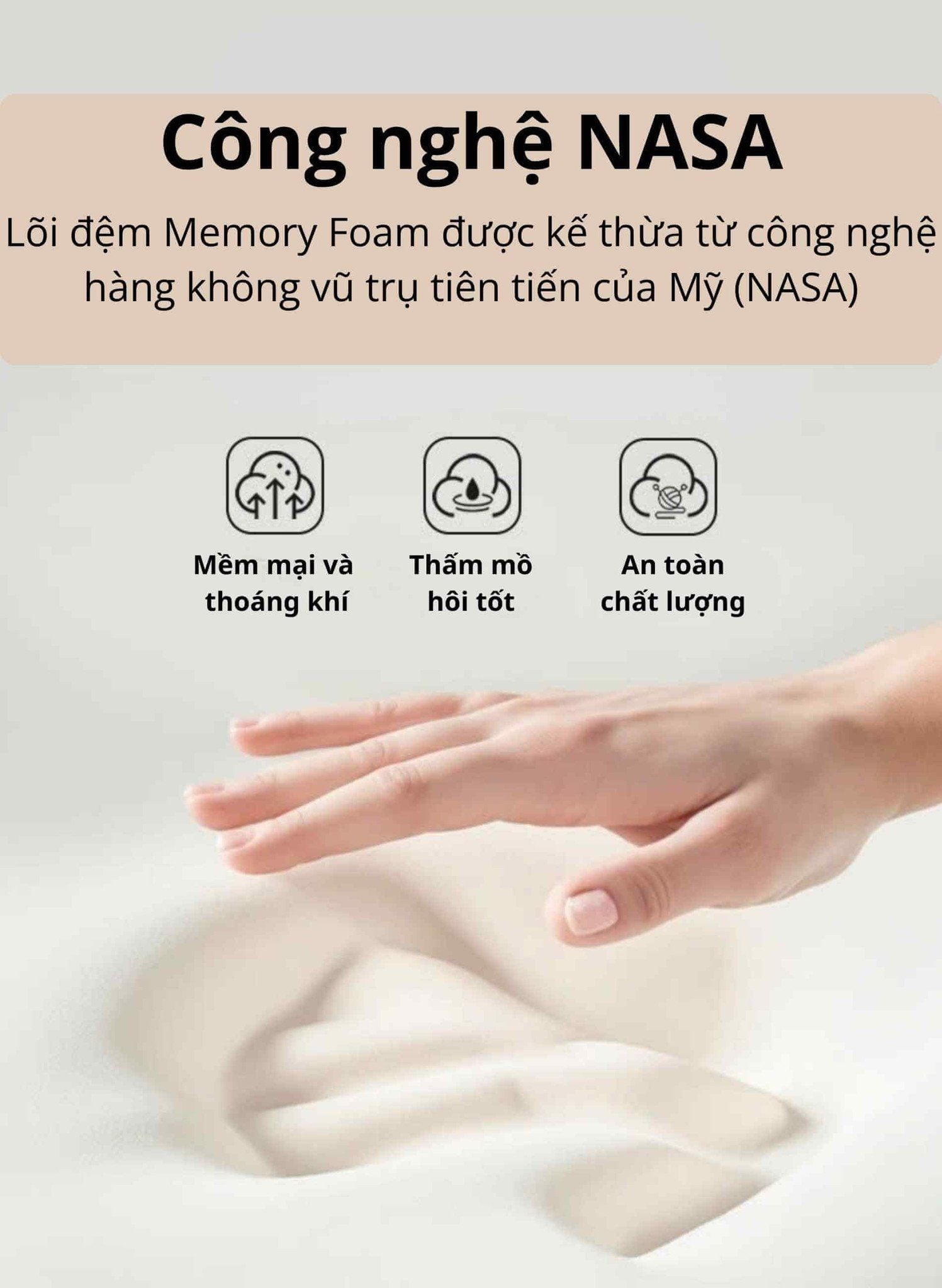 Công nghệ Đệm NASA: Sử dụng lõi Memory Foam từ công nghệ NASA, đảm bảo sự đàn hồi hoàn hảo, mềm mại nhưng không bị lún xẹp, mang lại sự thoải mái tối đa và bền bỉ.