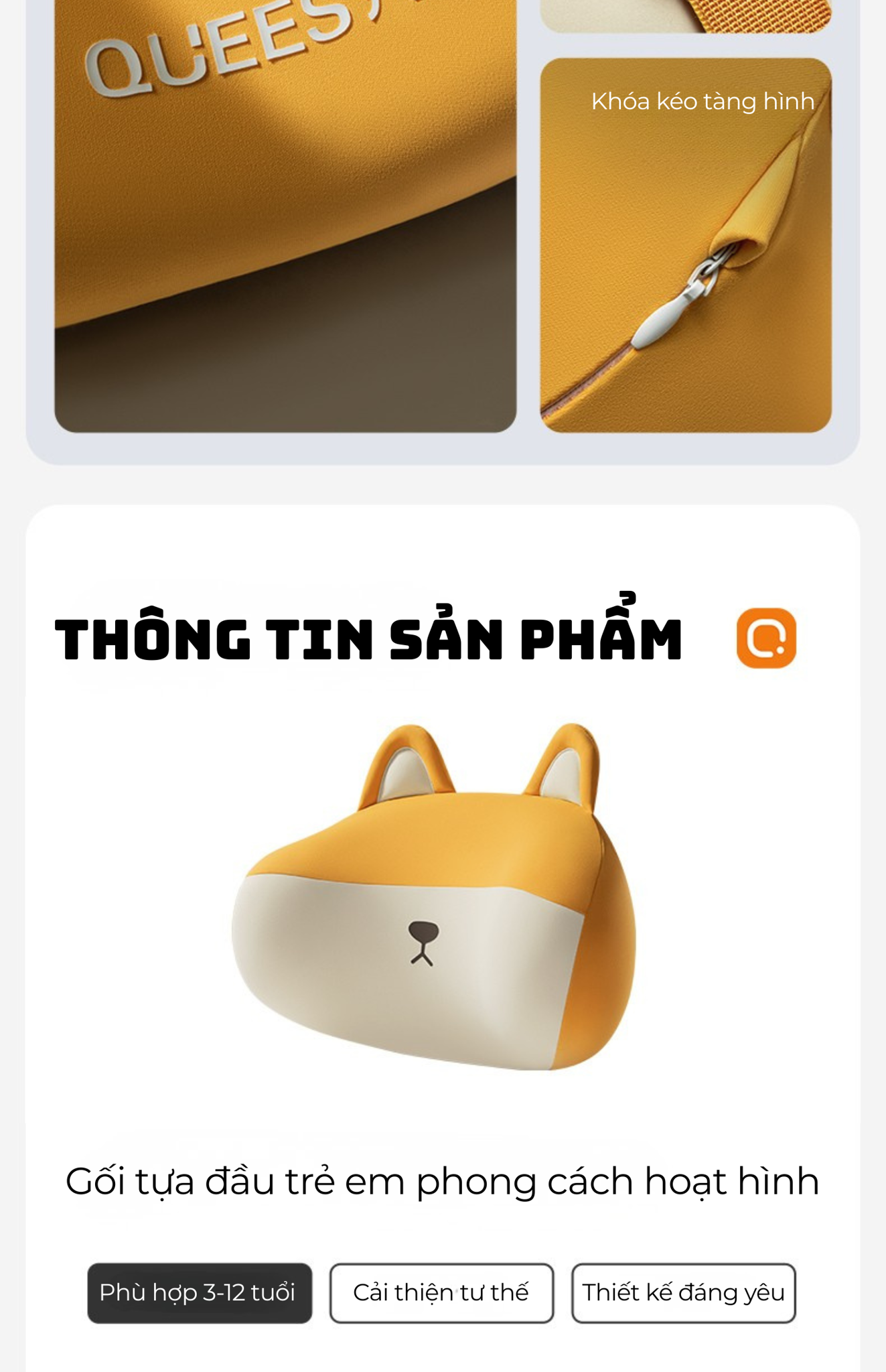 Sản phẩm gối tựa cổ/gáy được thiết kế với tiêu chí an toàn và hỗ trợ công thái học cho trẻ em, đặc biệt trong các chuyến đi dài hoặc khi ngồi học. Sử dụng vật liệu Memory Foam cao cấp đảm bảo độ mềm mại nhưng vẫn giữ được sự hỗ trợ cần thiết cho đốt sống cổ non nớt. Thiết kế được chú trọng đến tiêu chuẩn an toàn sức khỏe và dễ vệ sinh, mang lại sự yên tâm cho phụ huynh.