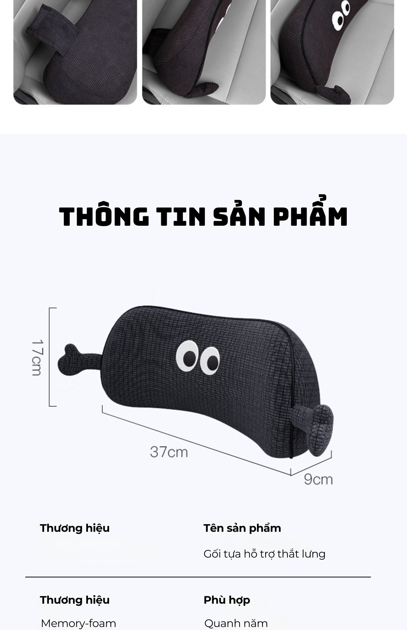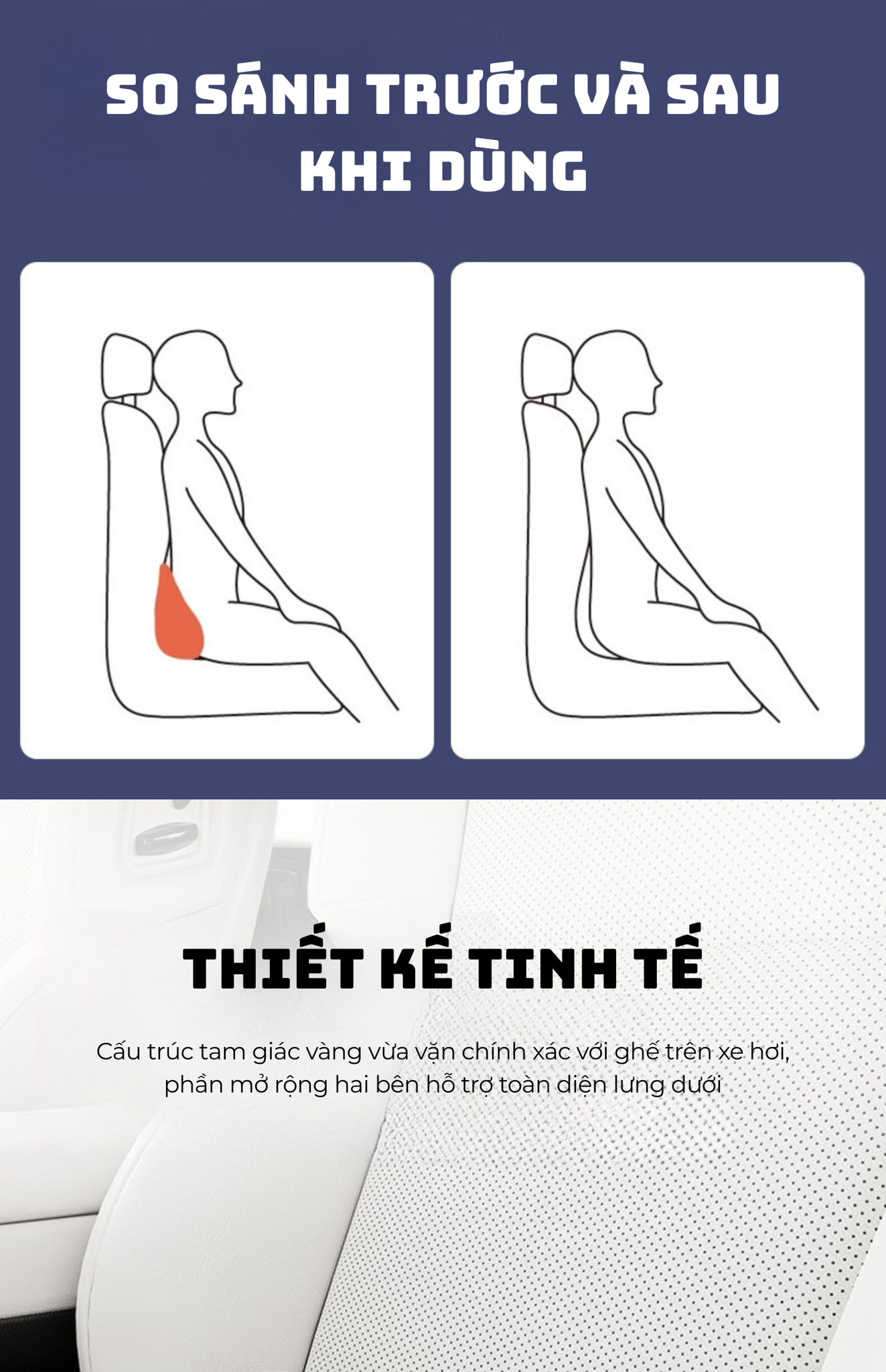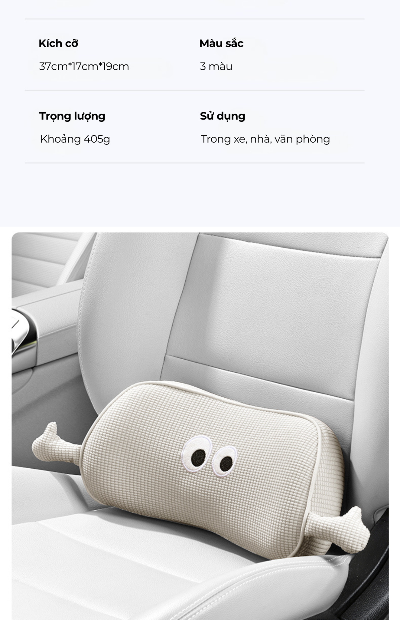1. Hỗ Trợ Công Thái Học Hoàn Hảo Lấp đầy chính xác khoảng trống yên ngựa: Thiết kế theo đường cong tự nhiên của cột sống, sử dụng "Cấu trúc Tam Giác Vàng" giúp lấp đầy khe hở giữa lưng và ngồi một cách chính xác. Hỗ trợ đa chiều: Cung cấp sự hỗ trợ hỗ trợ cho toàn bộ vùng thắt lưng, giúp cơ bắp có thể thư giãn và duy trì tư thế ngồi đúng. Giảm áp lực cột sống: Hỗ trợ chính xác vùng xương cụ và cơ bắp thắt lưng, giúp nhẹ nhàng nâng cột sống, giảm đau hiệu quả. 2. Chất lượng thoải mái vượt trội Mút mật độ cao: Lõi ghi đàn hồi phục chậm giúp phân tán áp lực nhanh chóng mang lại cảm giác thoải mái trong suốt chuyến đi. Vải Chống Nóng: Vỏ ngoài là vải dệt kim mật độ cao, thân thiện với da, kết hợp lớp lót thoáng khí bên trong, đảm bảo thông thoáng và khô ráo , không gây hầm bí ngay cả trong thời tiết nóng. 3. Thiết kế Sử dụng đa năng: Có thể dễ dàng lắp đặt và sử dụng cho cả người lái và hành khách ở hàng ghế sau , mang lại sự thoải mái đồng đều cho mọi thành viên trong gia đình. Kiểu dáng độc đáo: Kiểu dáng ngộ nghĩnh, đáng yêu giúp tăng thêm độ sắc nét cá tính và sinh động cho không gian nội thất xe hơi.