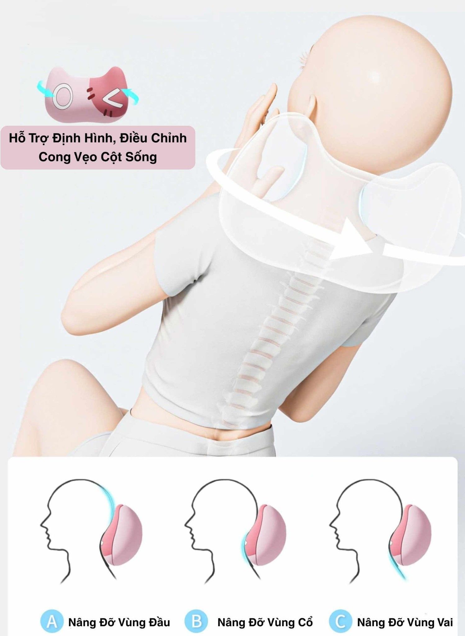 Hỗ trợ Cổ: Thiết kế hai bên nâng đỡ, ôm sát vùng cổ và gáy, hỗ trợ tối đa.