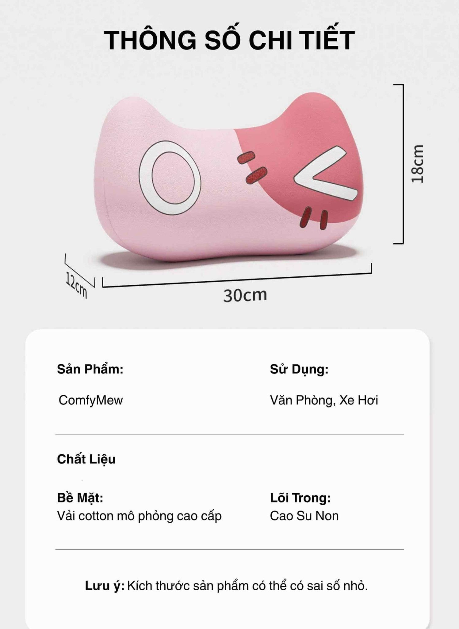 Tên sản phẩm: Gối tựa cổ/đầu công thái học ComfyMew (Thiết kế Mèo)