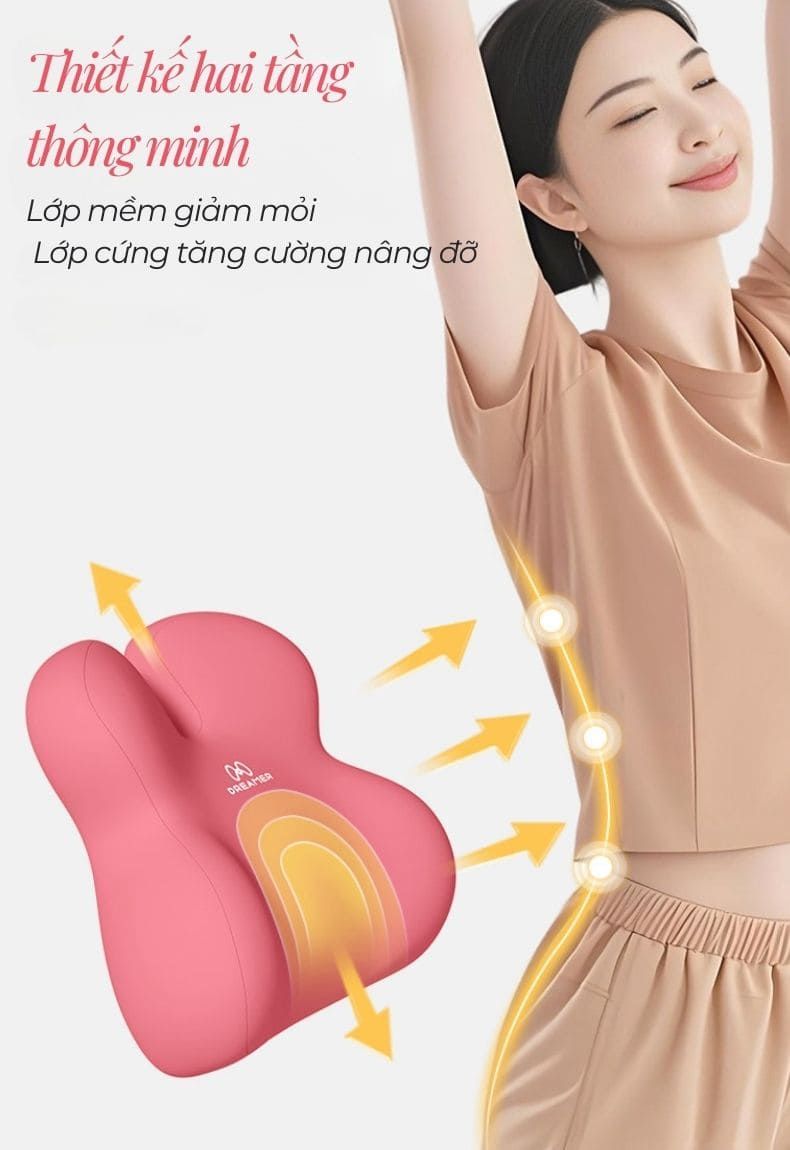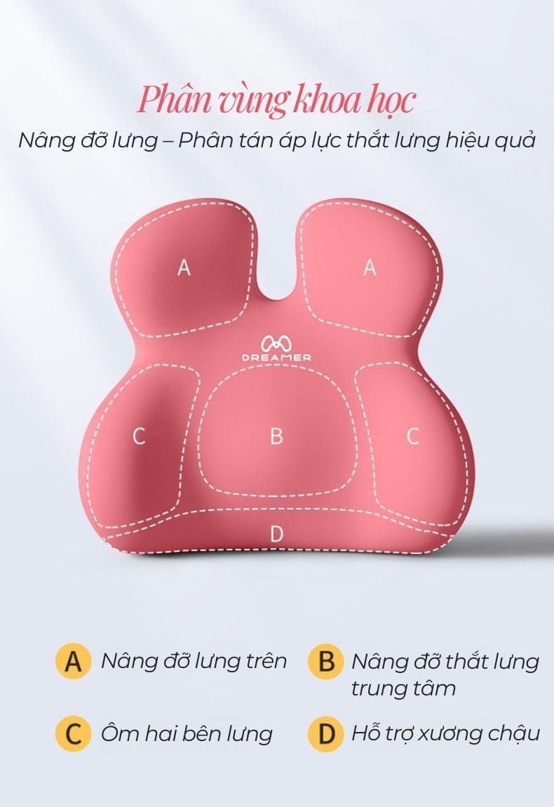 The ComfySilk | Đệm công thái học cao cấp, mềm mại êm ái được thiết kế chuẩn vùng thắt lưng trung tâm, nâng đỡ đúng điểm và phân tán áp lực hiệu quả khi ngồi lâu. Cấu trúc phân vùng khoa học ôm trọn lưng, giữ trục cột sống thẳng tự nhiên, hạn chế mỏi và đau lưng.