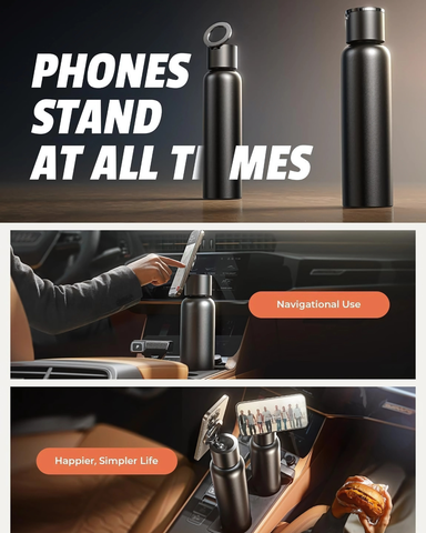 The MagCool | Bình giữ nhiệt tích hợp giá đỡ điện thoại xoay 360°