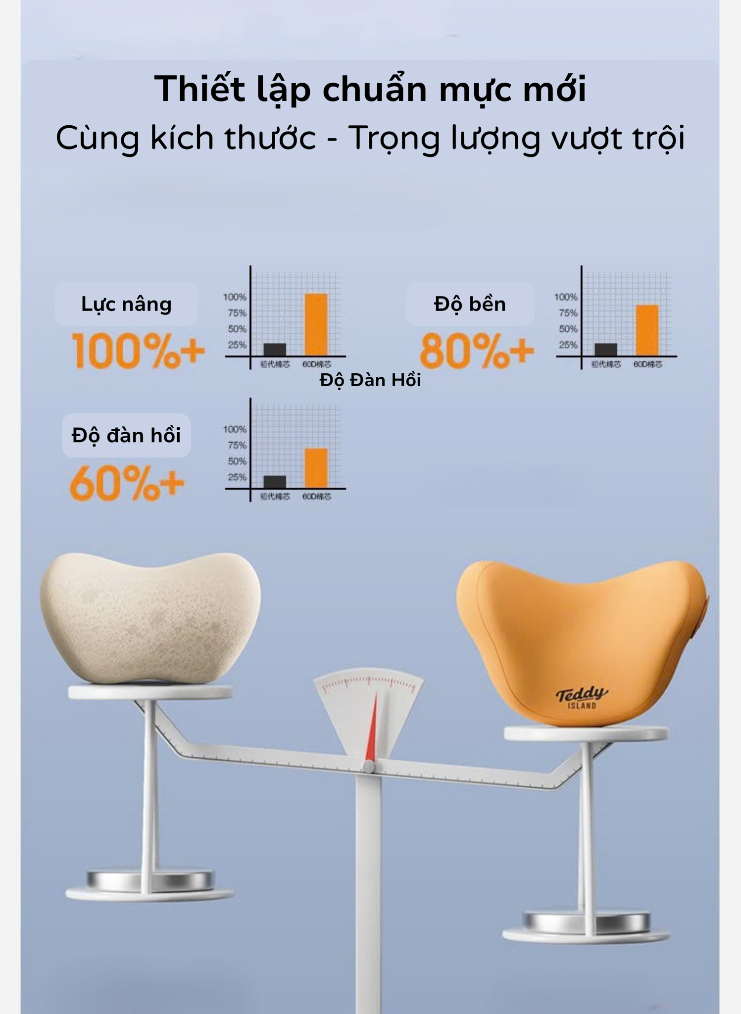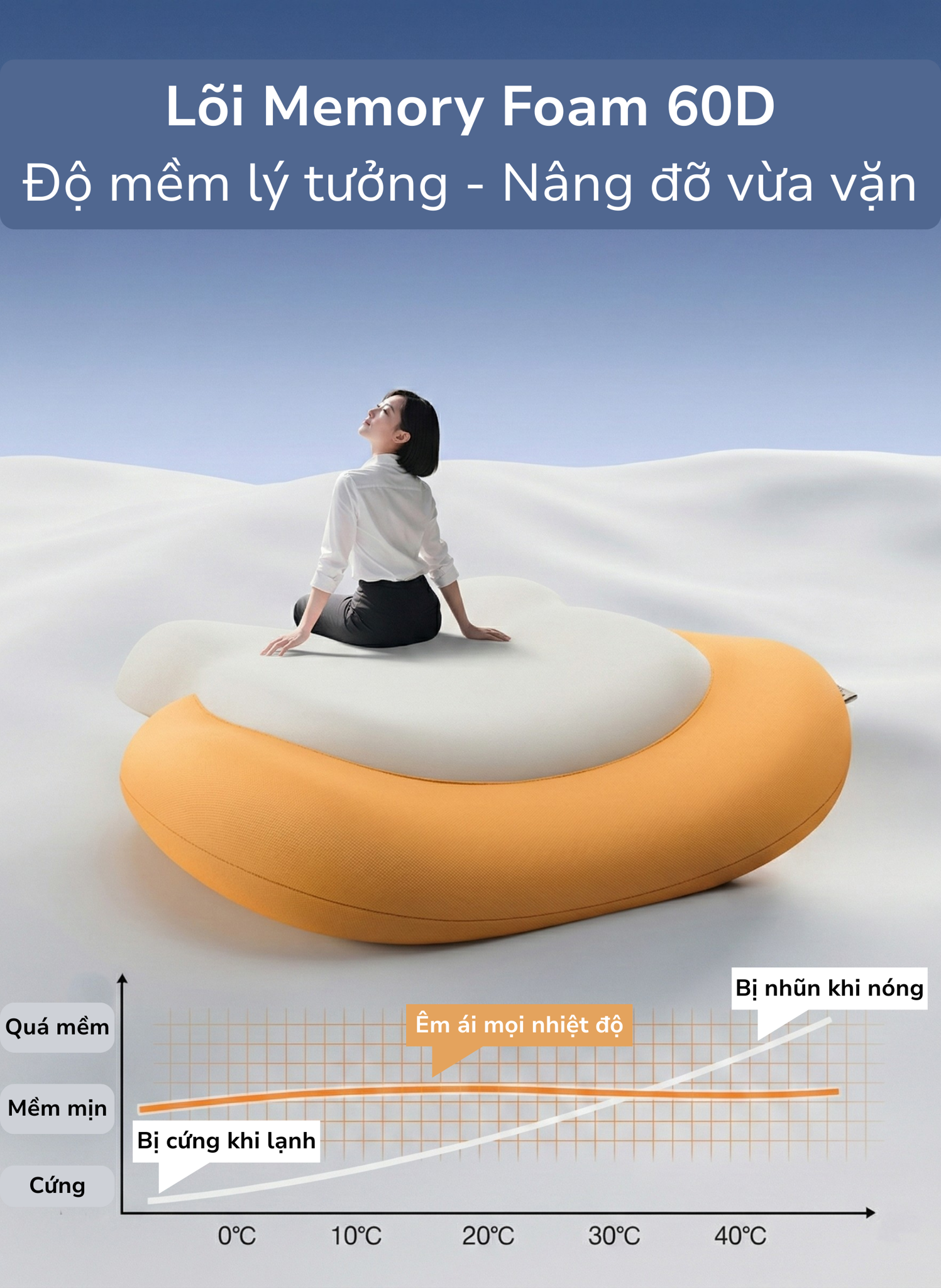 Lõi Memory Foam: Mút hoạt tính 60D hoàn toàn mới (HEILOLEIBOO).