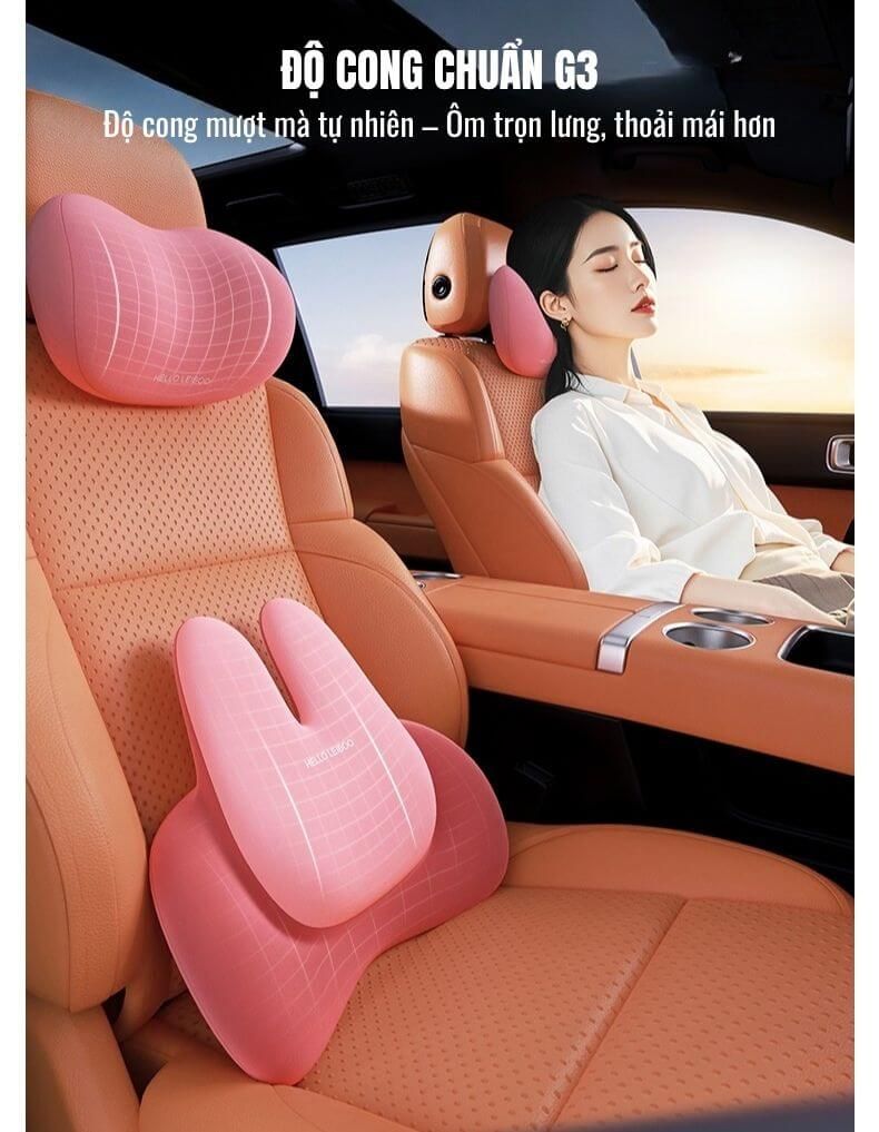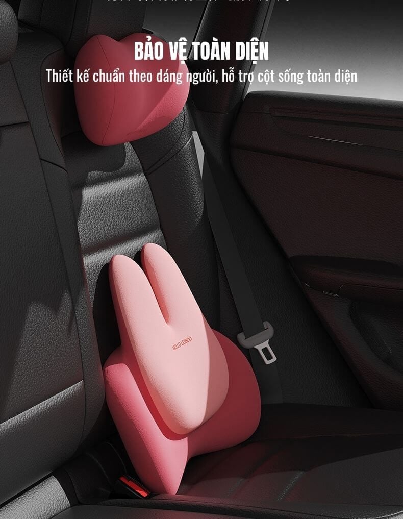Thiết Kế Tai Thỏ Tinh Tế và Đầy Cuốn Hút: Kiểu dáng gối tựa lưng hình tai thỏ không chỉ độc đáo, đáng yêu mà còn tối ưu hóa khả năng nâng đỡ, tạo điểm nhấn thẩm mỹ cho chiếc xe của bạn.