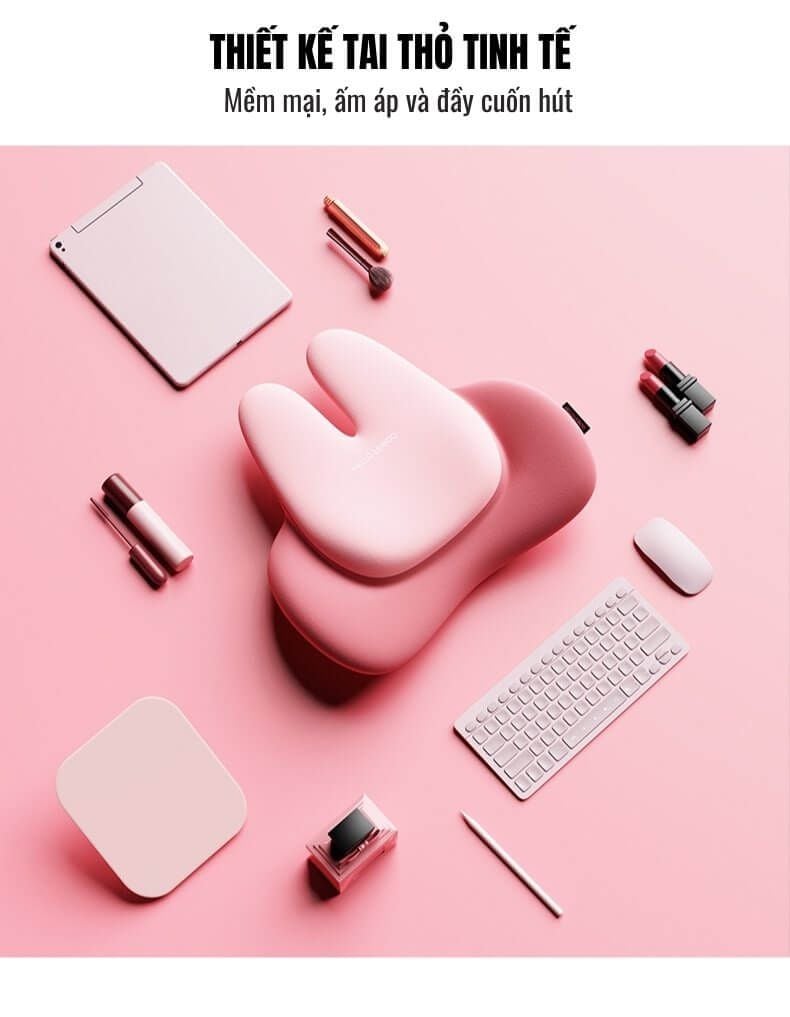 Gối Tựa Lưng: Thiết kế tai thỏ độc đáo, ôm trọn đường cong thắt lưng, phân bổ đều trọng lực, hỗ trợ hiệu quả cho cột sống, giúp duy trì tư thế ngồi chuẩn và hạn chế đau mỏi lưng.