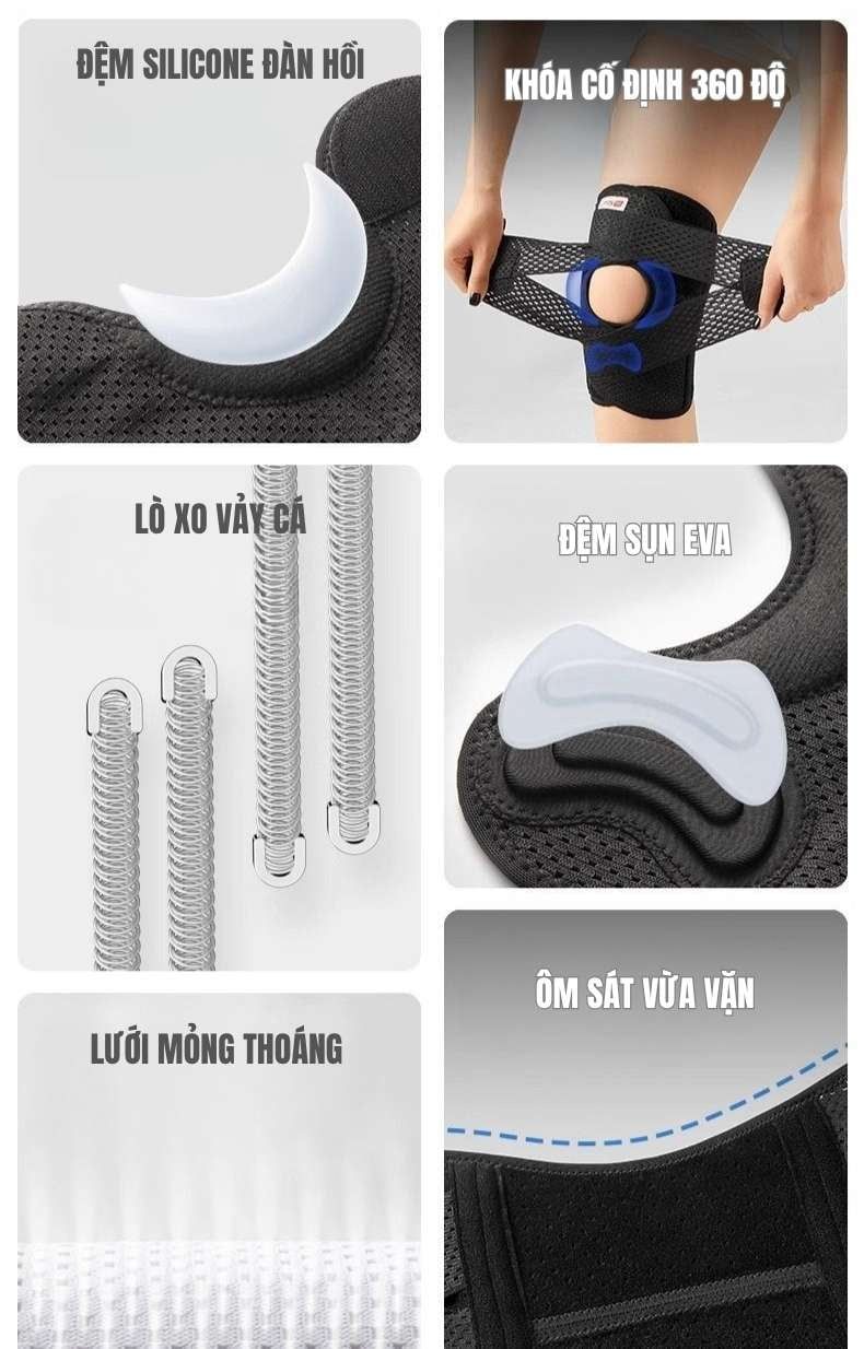 The ZenK Premium nổi bật với thiết kế hỗ trợ góc 135°, lý tưởng cho các động tác squat sâu, giúp bảo vệ khớp gối khi chơi thể thao hoặc vận động mạnh. Lớp vải lưới thoáng khí kết hợp đệm EVA giảm chấn, đảm bảo đầu gối luôn khô thoáng, không hầm bí. Thanh thép lò xo tăng độ ổn định, giảm áp lực, ngăn chấn thương khi xoay gối. Sản phẩm có thiết kế ergonomic, ôm sát cấu trúc đầu gối, không hạn chế chuyển động, phù hợp cho chạy bộ, gym, bóng rổ, bóng chuyền. Độ co giãn cao cấp giúp đai không trượt, hỗ trợ liên tục, mang lại sự an tâm và thoải mái tối đa.